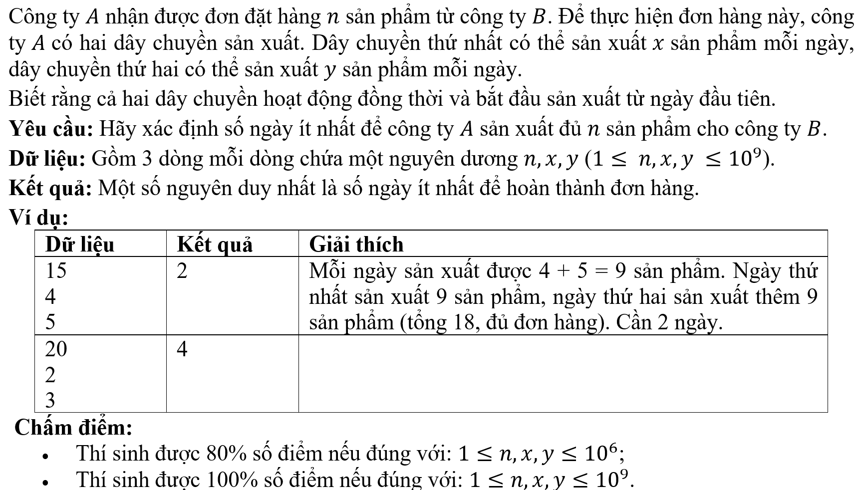 - Dòng thứ nhất là số n